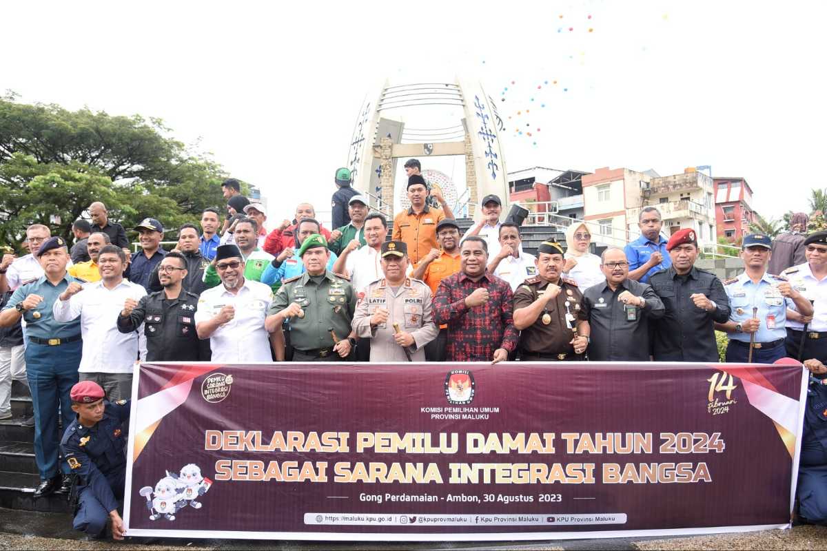 Acara dilanjutkan dengan pembacaan ikrar deklarasi damai oleh Ketua KPU dan Ketua Bawaslu Prov Maluku diikuti para ketua parpol, penyelengara pemilu, peserta pemilu Forkopimda dan pemangku kepentingan lainnya dampingi ikon pemilu yaitu Sura dan Sulu.