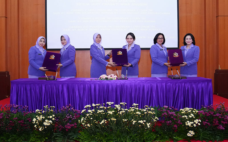Klikwarta.com, Jakarta – Ketua Ikatan Kesejahteraan Keluarga Tentara (IKKT) Pragati Wira Anggini (PWA) Gabungan II Itjen TNI Ny. Etta Suhartono mewakili Ketua Harian IKKT PWA Ny. Shinta Bambang Ismawan memimpin serah terima lima Jabatan Ketua IKKT, bertempat di gedung Tjut Nya Dien Mabes TNI Cilangkap, Jakarta Timur pada Jumat (22/12/2023).