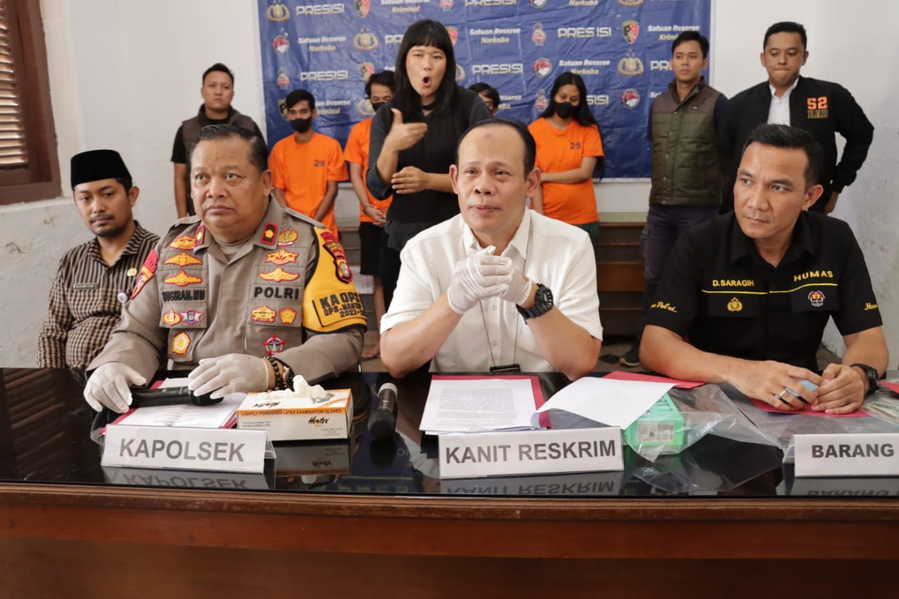 Kapolsek Palmerah Polres Metro Jakarta Barat, Kompol SUGIRAN, S. Pd, MM, didampingi Kasi Humas, Akp DIAMAN SARAGIH, dan Kanit Reskrim, AKP RONI, S.Ag, SH., menjelaskan bahwa modus operandi pasangan ini adalah mencari korban melalui aplikasi kencan online seperti inisial “Bd,” “Lh,” dan “Bo.”